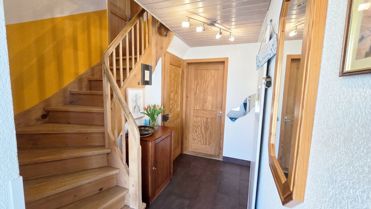 Im Obergeschoss erwarten Sie drei gemütliche Schlafzimmer sowie ein zusätzliches Büro. Das grösste Schlafzimmer verfügt über einen eigenen Balkon mit Aussicht in den idyllischen Garten.