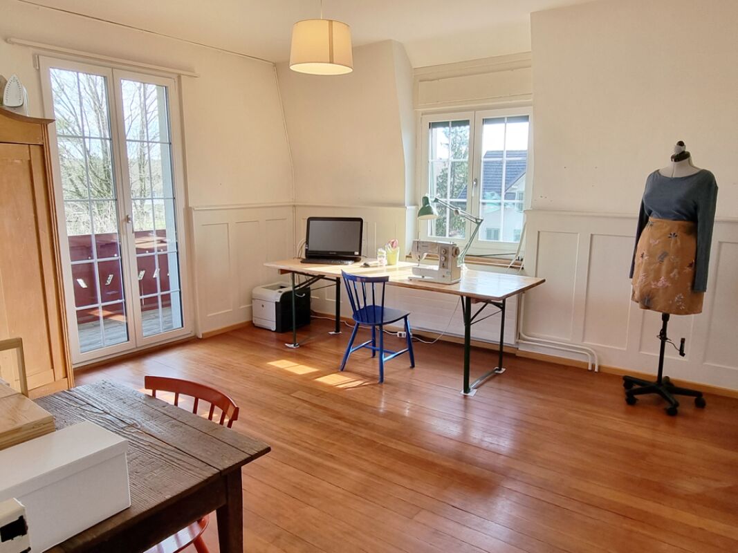 Das Obergeschoss umfasst drei Schlafzimmer und ein Tageslicht-Badezimmer. Im Dachgeschoss befindet sich ein weiteres Zimmer sowie ein offener Estrichbereich, die zusammen zusätzlichen Raum für vielseitige Nutzungsmöglichkeiten schaffen.